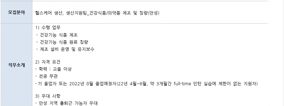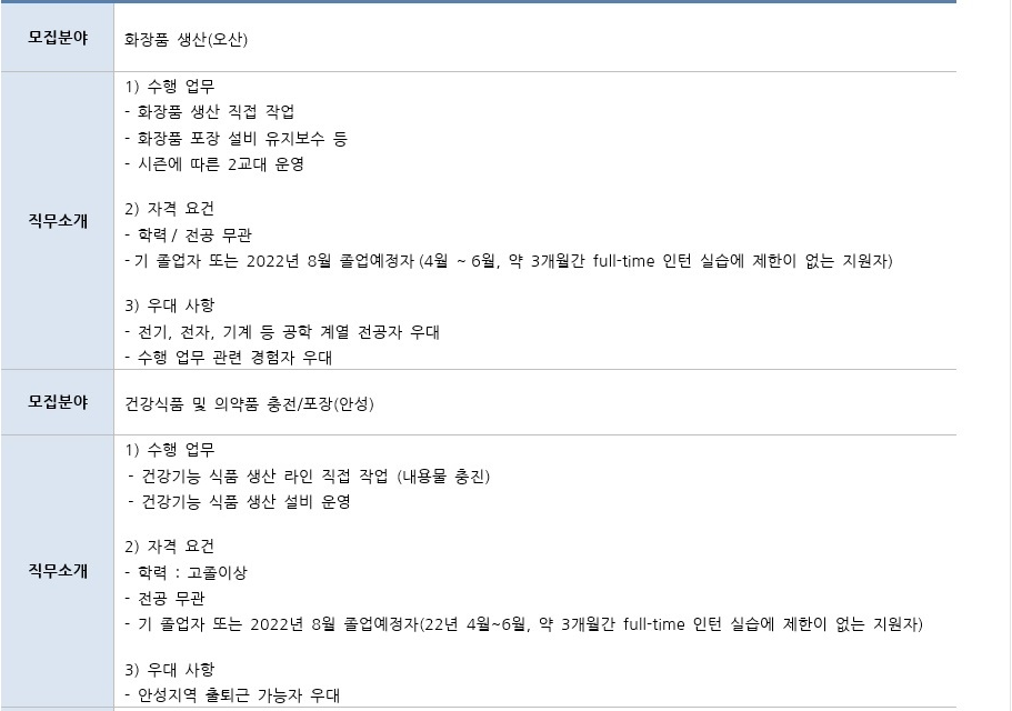 | [오송/대소] inno.N 오송/대소 공장 신입사원 모집 (3) | 2022.03.11 |