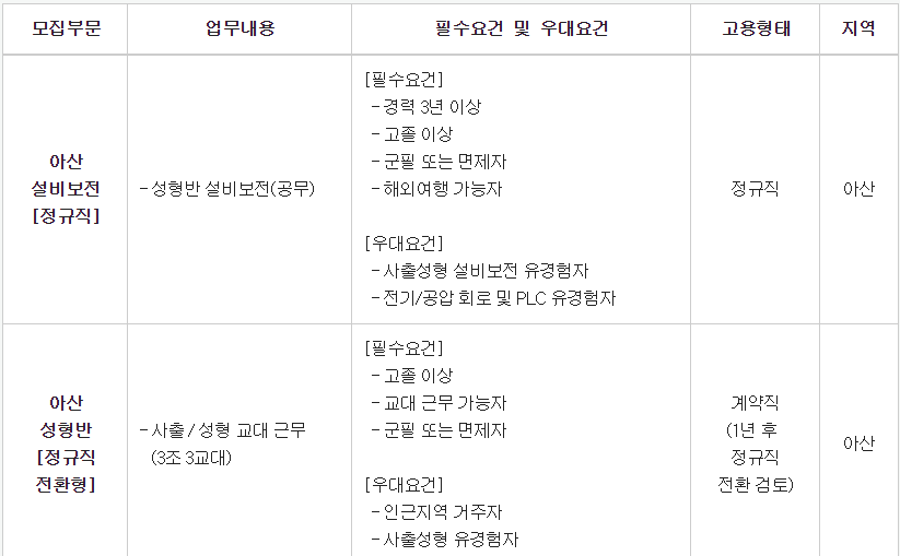 니프코코리아 생산팀 기능직 인재 채용에