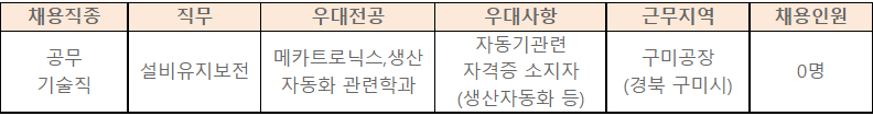 - 근무지 : 구미공장 (경상북도 구미시 1 공단로 7길 58-11)