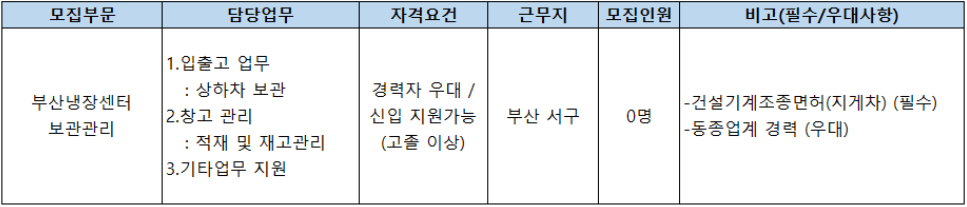 동원산업 부산냉장센터 보관관리(지게차) 신입/경력 모집에