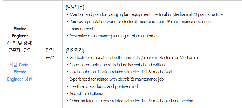 > 근무위치 : [당진공장] 충청남도 당진시 송악읍 부곡공단4길 81