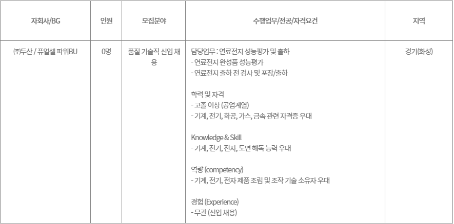 - 접수방법 : 두산그룹 채용 홈페이지(http://career.doosan.com)를 통한 Online 접수