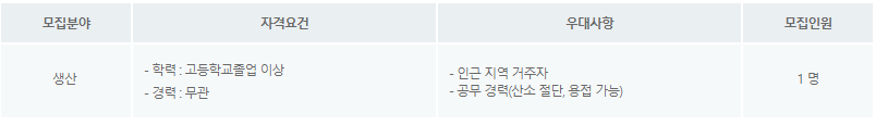 - 근무일시 : 주5일 (월~금) 08:00 ~ 17:00