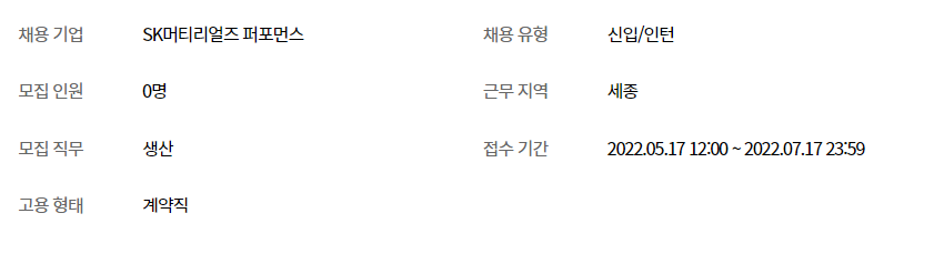 채용공고 사이트 : (http://careers.sk-materials.com›family)
