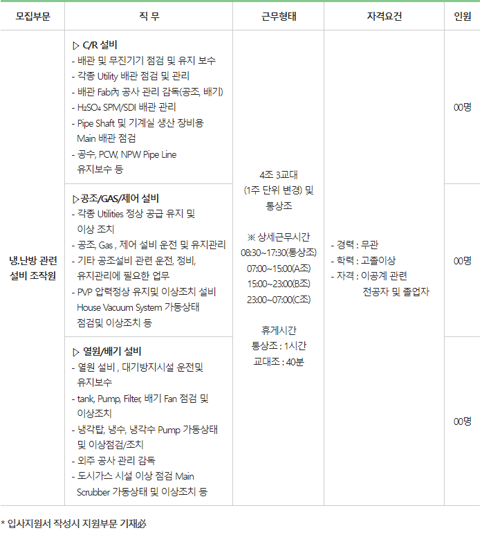 - 근무지역 : 충북 SK하이닉스 청주사업장 내
