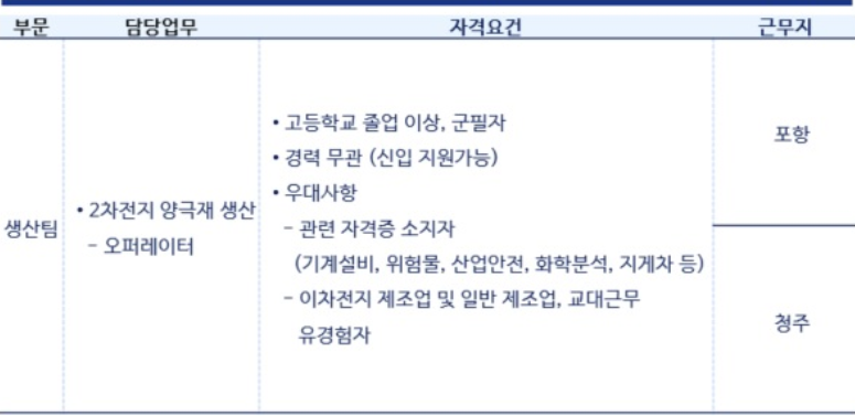 - 접수방법 : 에코프로 채용 홈페이지(https://ecopro.recruiter.co.kr/appsite/company/index)