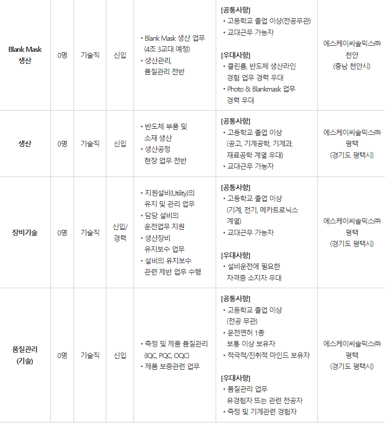 [울산] SK머티리얼즈 리뉴텍 제품 출하 Operator 모집 (0) | 2022.07.29 |