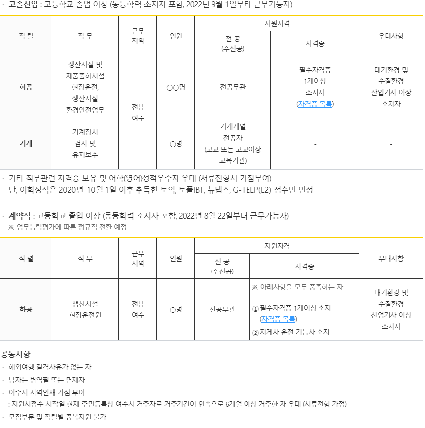 | [여수] GS칼텍스 '22년 2기 생산기술직 인턴 모집 (0) | 2022.07.29 |