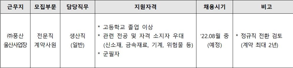 [포항] OCI '22년 하반기 포항공장 생산기능직 채용 (0) | 2022.07.31 |