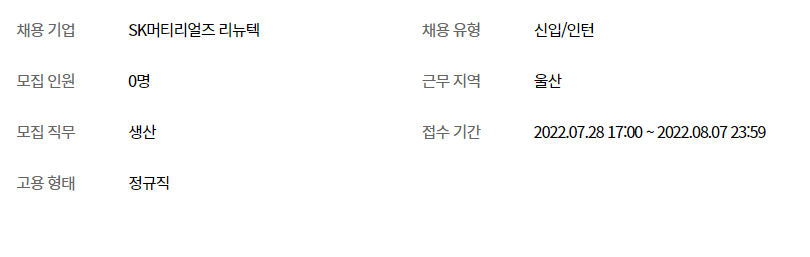 | [정읍] SK넥실리스 '22년 하반기 기능직 신입사원 채용 (0) | 2022.08.01 |