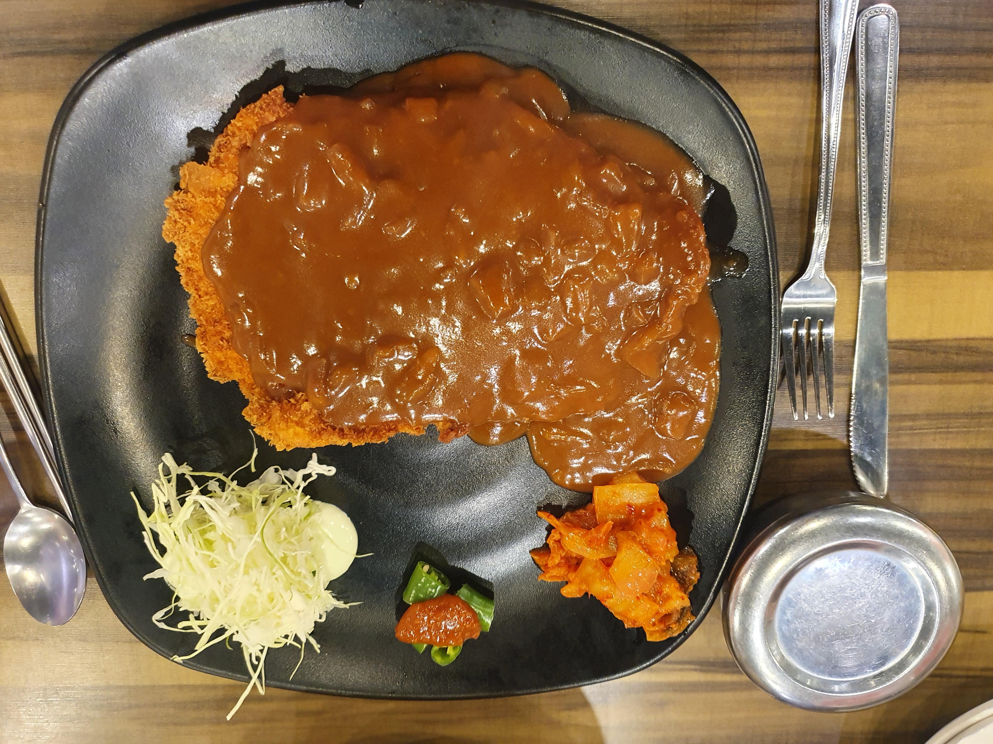 둘이 가서 돈가스 하나 짬뽕하나 시켜서