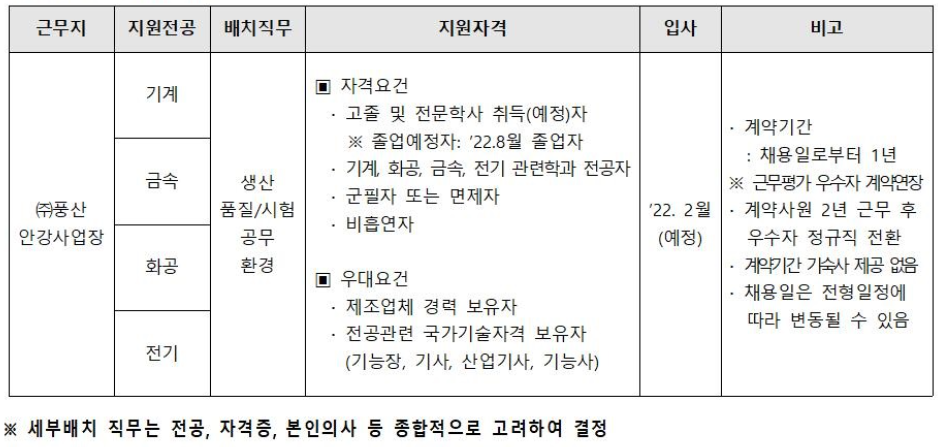 이번에는 풍산 안강사업장 전문직 계약사원(정규직 전환형) 채용
